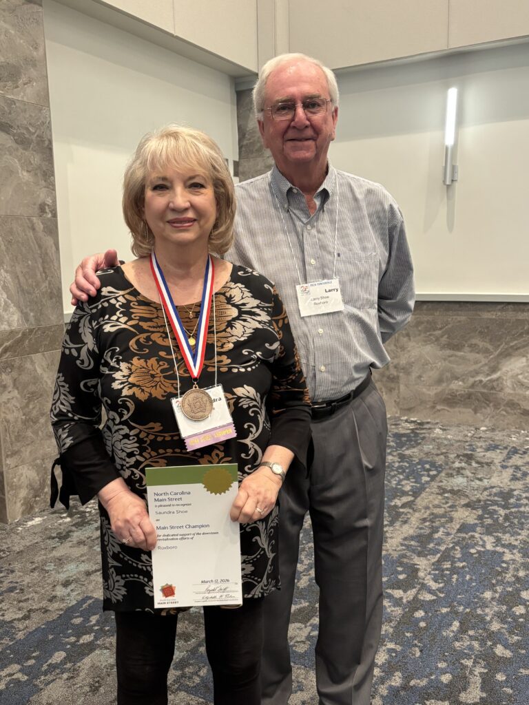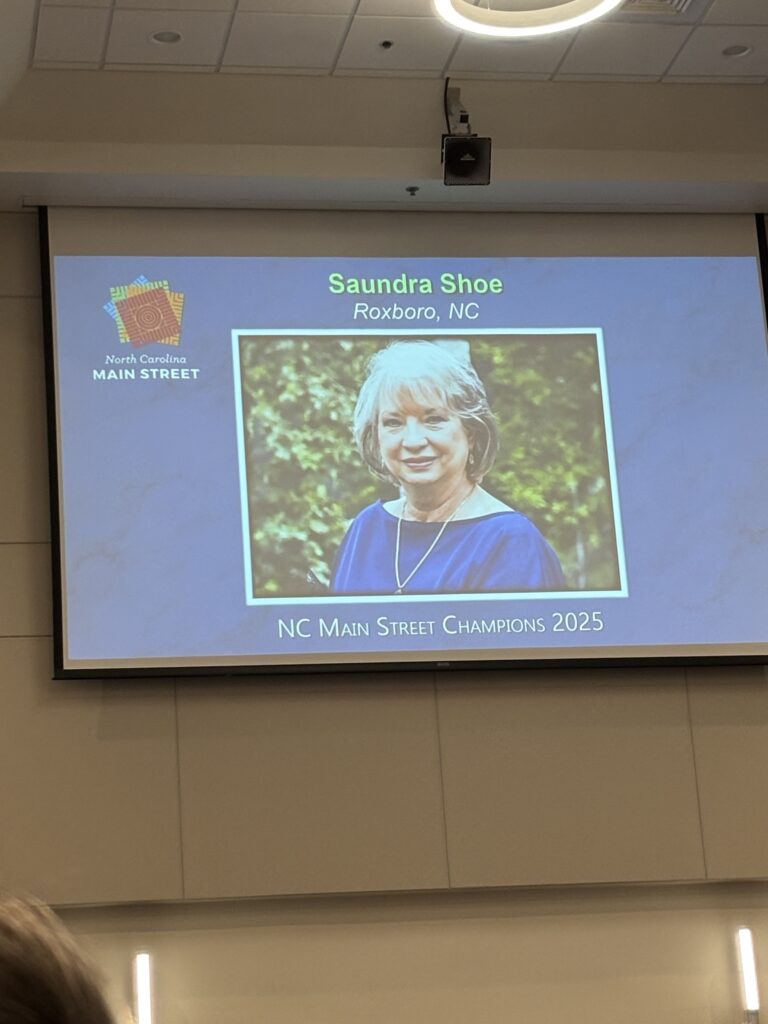 For her passion, generosity, and unwavering dedication, Roxboro proudly names Saundra Shoe as its 2025 NC Main Street Champion.